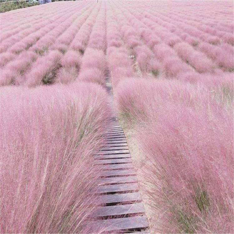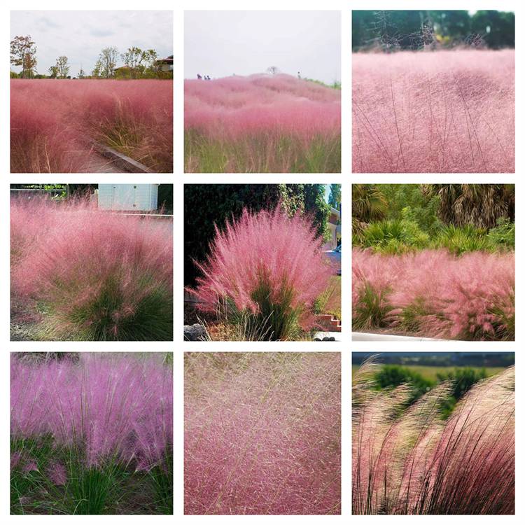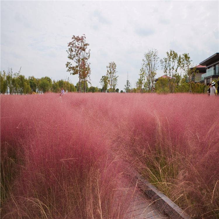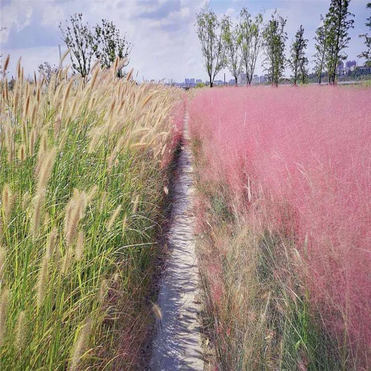 粉黛乱子草(学名:Muhlenbergia capillaris (Lam.) Trin.):是禾本目、禾本科、乱子草属植物。多年生暖季型草本,株高可达30-90厘米,宽可达60-90厘米。顶端呈拱形,绿色叶片纤细。顶生云雾状粉色花絮,花期9-11月,成片种植可呈现出粉色云雾海洋的壮观景色,景观可由9月份一直持续至11月中旬,观赏效果好。