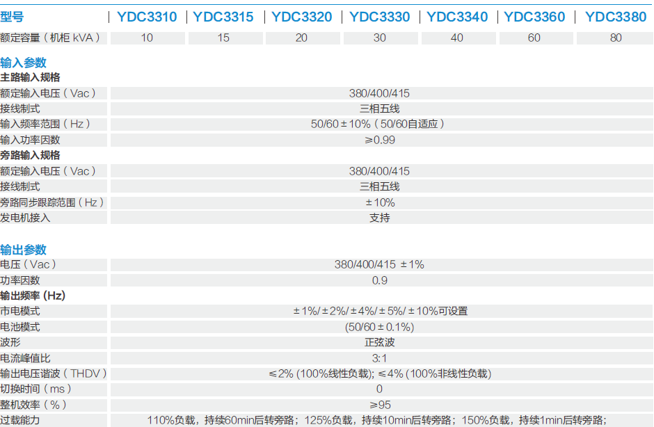 过载能力: ≤125%额定负载5分钟后转旁路;≤150%额定负载1分钟后转旁路