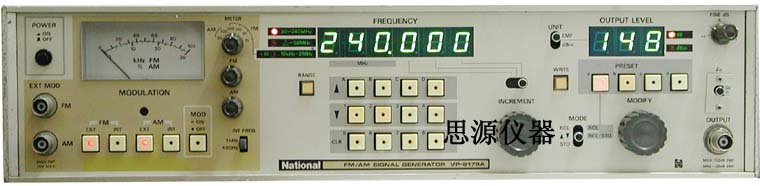 | 名称: 调频调幅信号发生器 型号: VP-8179A 厂家: 日本松下 10kHz-3MHz,3-30MHz,30MHz-240MHz,6位数显 |