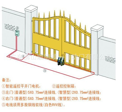 ■受力合理:门机安装在远离门铰链一侧,驱动力直接作用在大门起、闭方向上。省电、***。
