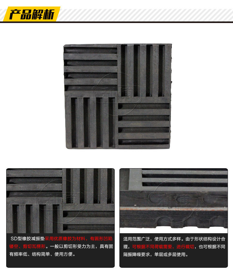 SD型橡胶隔振垫采用优质***橡胶为主要原料,主要受剪切力。