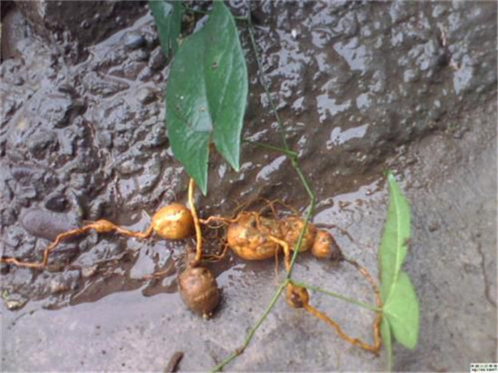 成年后的植株不怕干旱!但块茎较少!根须较长!常常一二尺甚至一米多挖不到一个!须根长到那里!块茎就结到那!无规则可寻!一般来说筷头大的苗至少可以挖三五个!比圆珠笔头小的苗挖一到二个!